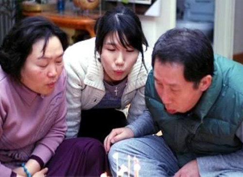 2008년 겨울 김근태 전 민주당 상임고문 생일에 함께 촛불을 끄는 인재근 더불어민주당 의원과 딸 병민 씨, 김 전 고문의 모습(왼쪽부터). 딸 병민 씨는 “다양한 조언이 담긴 아버지의 편지글은 지금도 내게 가장 든든한 삶의 버팀목”이라고 말했다. 알마출판사 제공