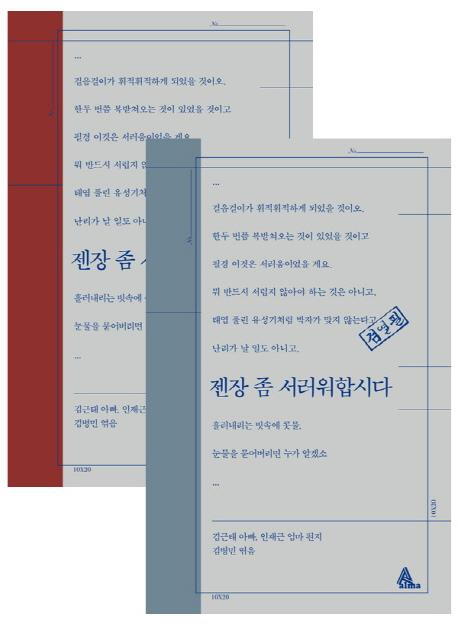 이 편지 텍스트는 서울 종로구 통의동 보안여관에서 열리고 있는 6주기 추모전 ‘따뜻한 밥상’에서도 다양한 형태의 현대미술 작품으로 변주돼 전시됐다.