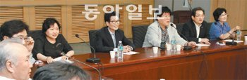 ‘누구를 밀까’ 민평련 첫 토론회 고 김근태 전 의원 지지 인사들의 모임인 민주평화국민연대가 22일 국회 의원회관에서 토론회를 열고 누구를 당 대선후보로 밀지 논의했다. 오른쪽부터 유승희, 노영민, 최규성, 이목희, 인재근 민주통합당 의원. 인 의원은 고인의 부인이다. 김동주 기자 zoo@donga.com