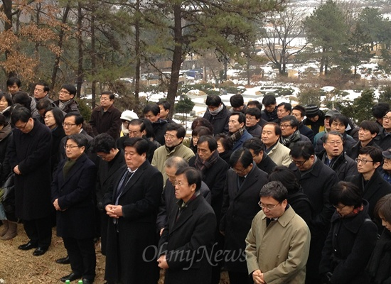 ▲ 지난해 12월 30일 타계한 고 김근태 전 민주통합당 상임고문의 1주기 추모 참배 행사가 열린 29일 오후 경기도 마석 모란공원에 마련된 묘역을 찾은 참배객들이 추모의식을 지켜보고 있다.