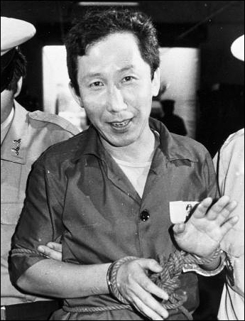▲ 양손에 포승줄을 한 채 밝은 미소를 짓는 김근태