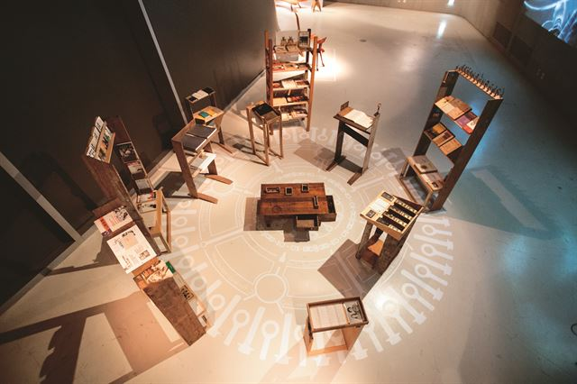 설치미술작가 이부록의 '근태서재 새서랍 숲'은 김근태 전 보건복지부 장관의 삶을 돌아볼 수 있는 물건과 기록을 정리해 원형 서재로 구성한 전시다. 김 전 장관의 강의노트와 노동운동 관련 책자, 미술전시 도록 등을 펼쳐볼 수 있다. 근태생각 제공