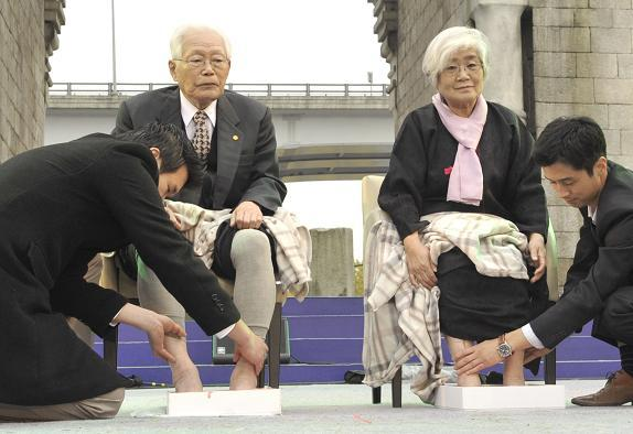 지난해 독립인사들이 풋프린팅을 하고 있다.