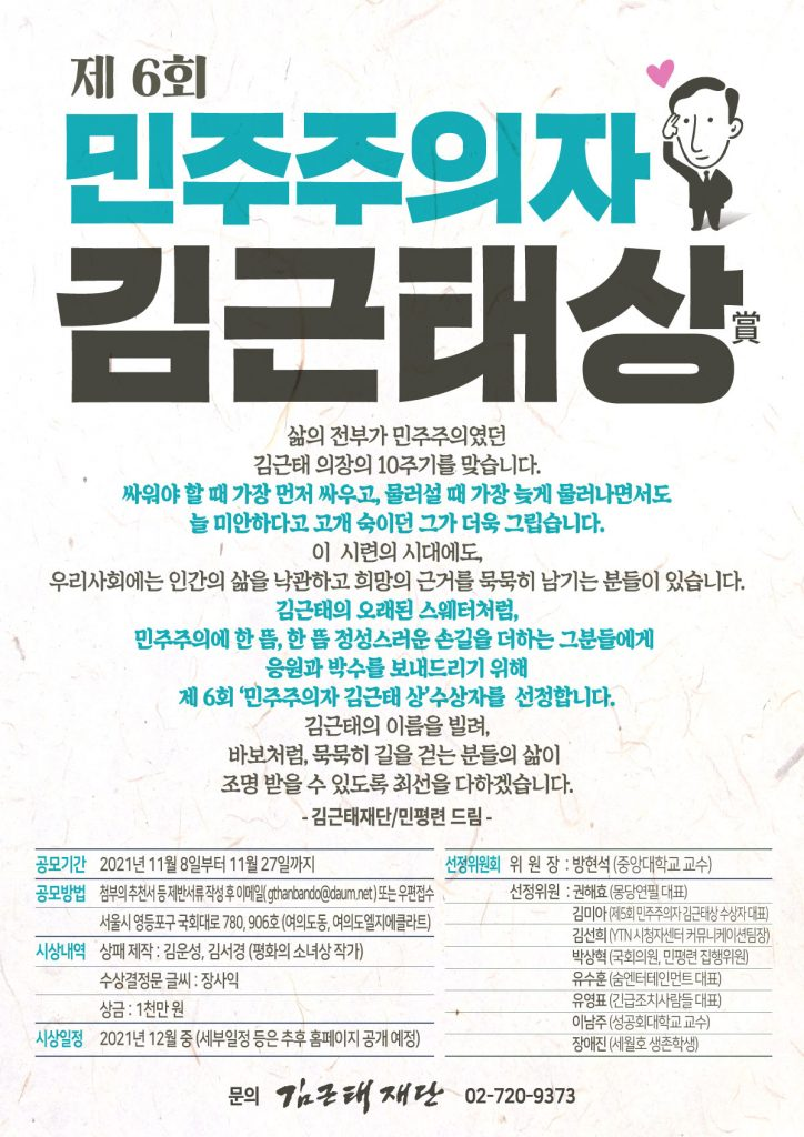 응원과 박수를 보내드리기 위해 제6회‘민주주의자 김근태 상’수상자를 선정합니다.