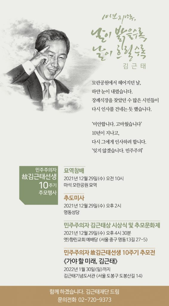 민주주의자 故 김근태 선생 10주기 추모행사 안내