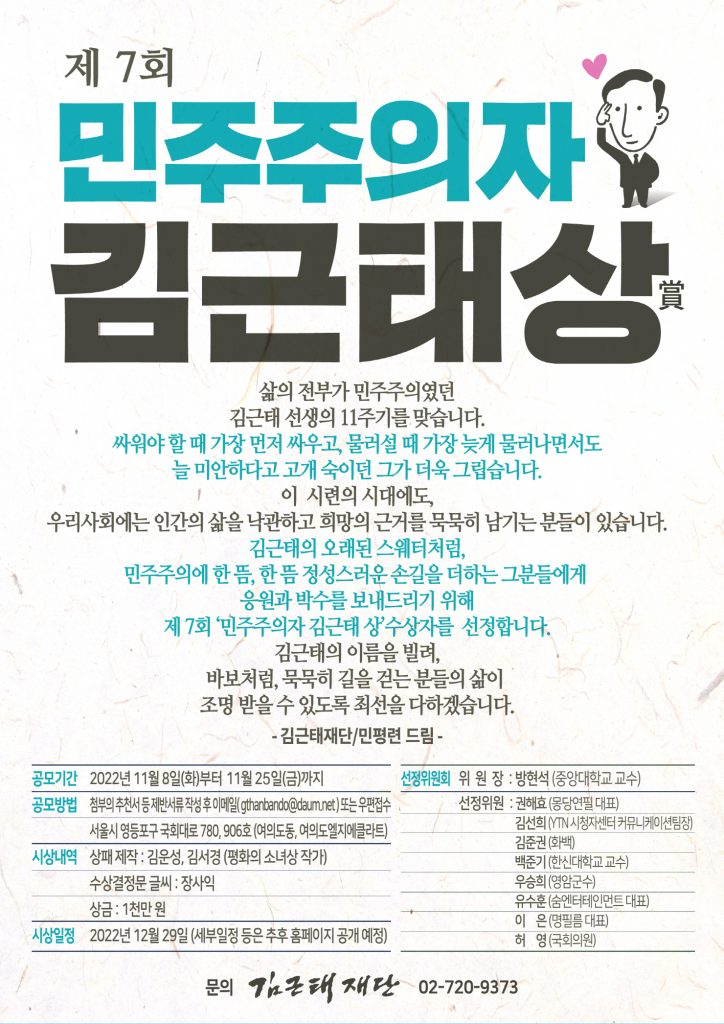 『제7회 민주주의자 김근태 상』 참여 안내
