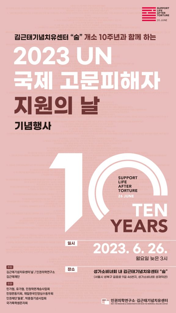 – 공동주최 : 김근태재단, 김근태기념치유센터, 인권의학연구소