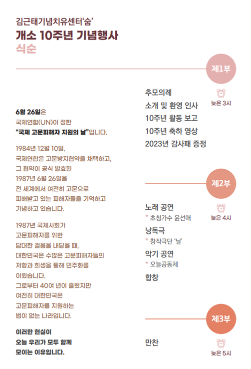 – 행사명 : 김근태기념치유센터‘숨’ 개소 10주년 기념행사
