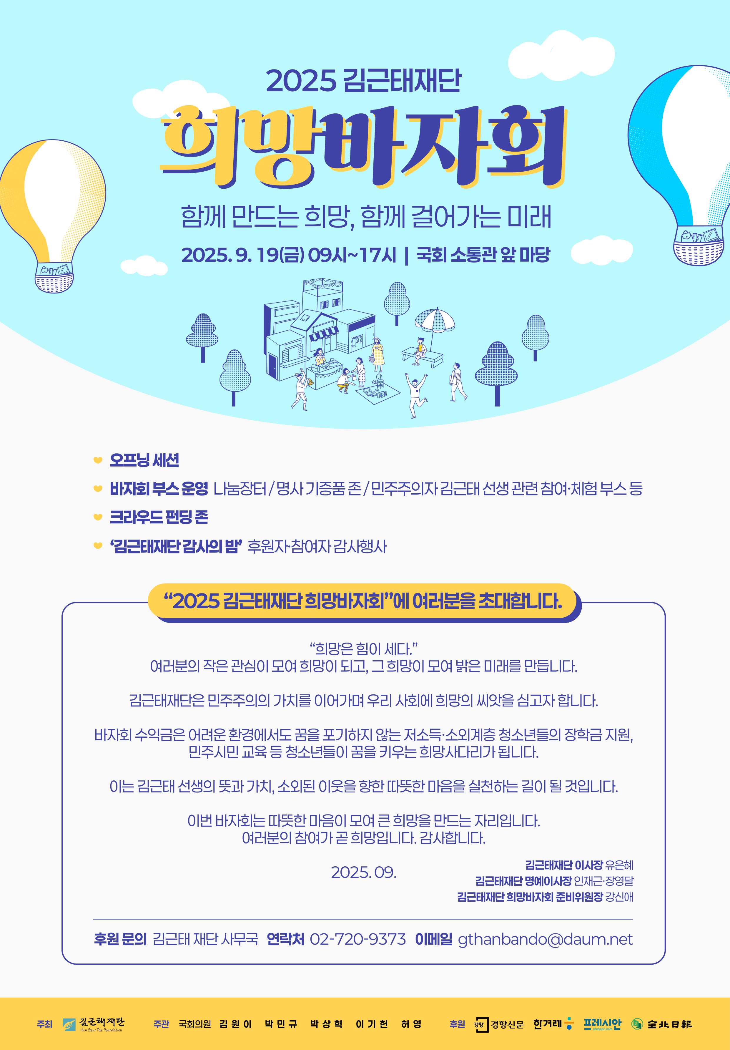[공지사항] "2025 김근태재단 희망바자회" 안내