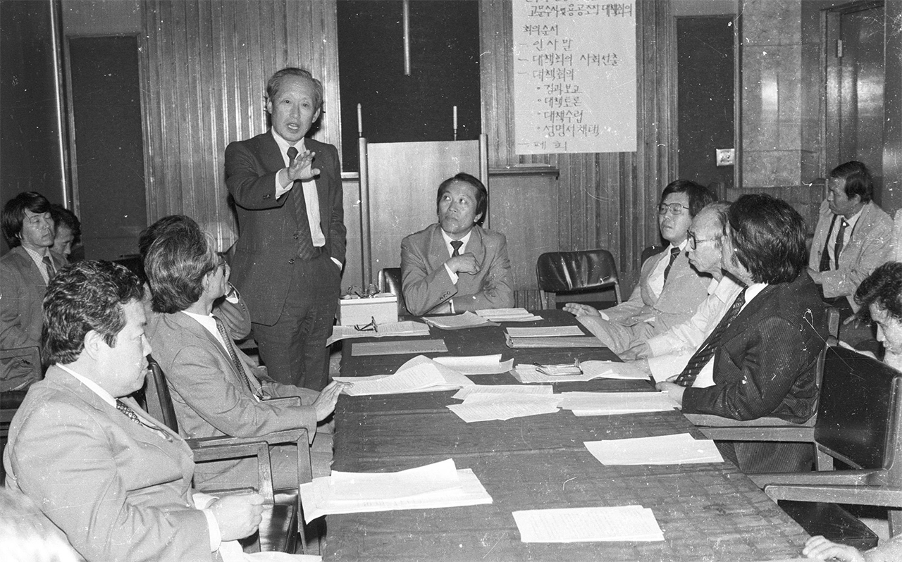 ▲ 1985년 11월 4일 열린 고문공대위에서 발언하는 고 문익환 목사