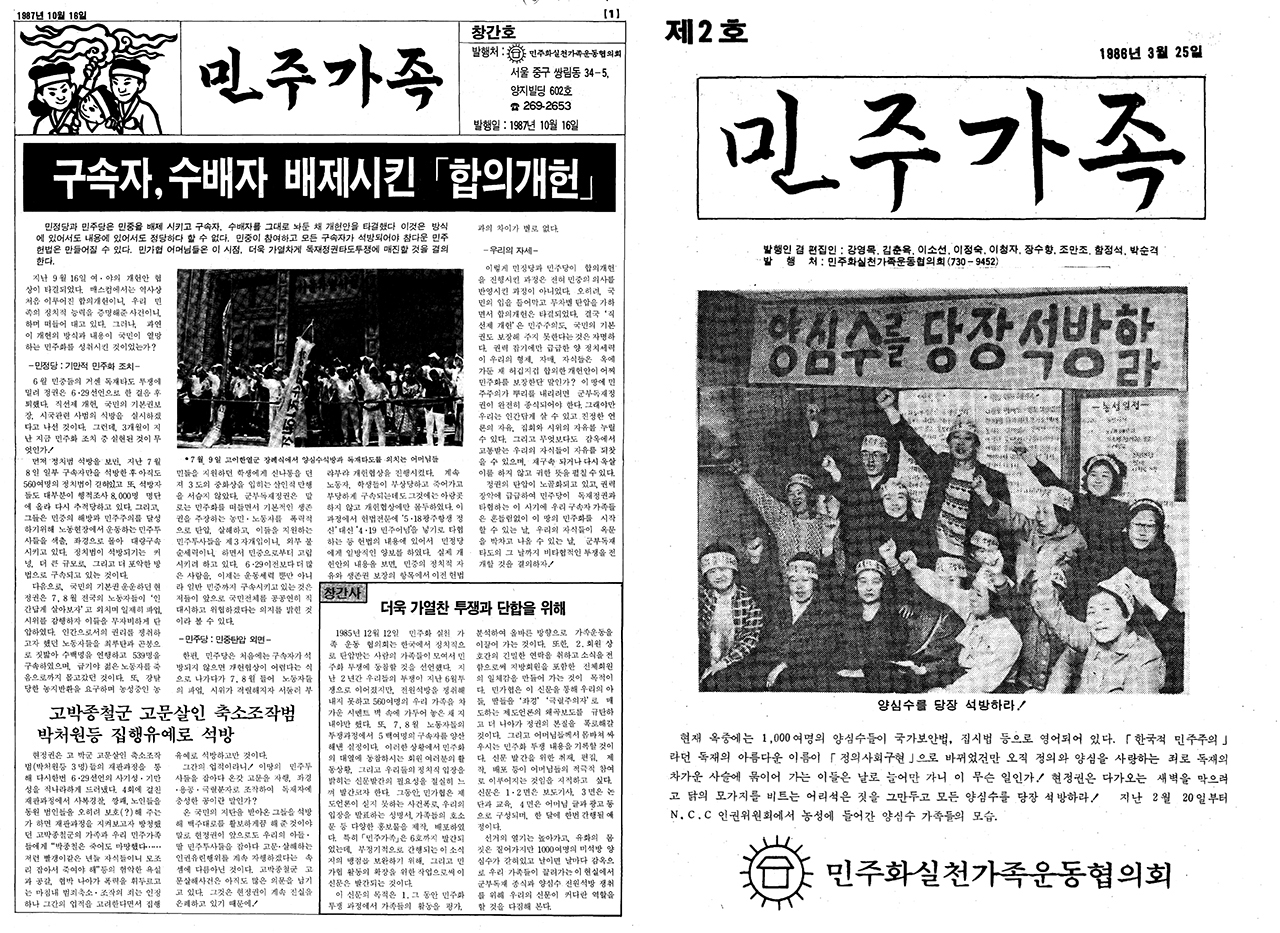 ▲ 민가협 기관지 [민주가족] 창간호와 2호 표지