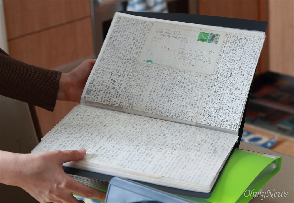고 김근태 의원 딸 김병민씨가 아버지와 어머니가 주고 받은 편지를 보여주고 있다.