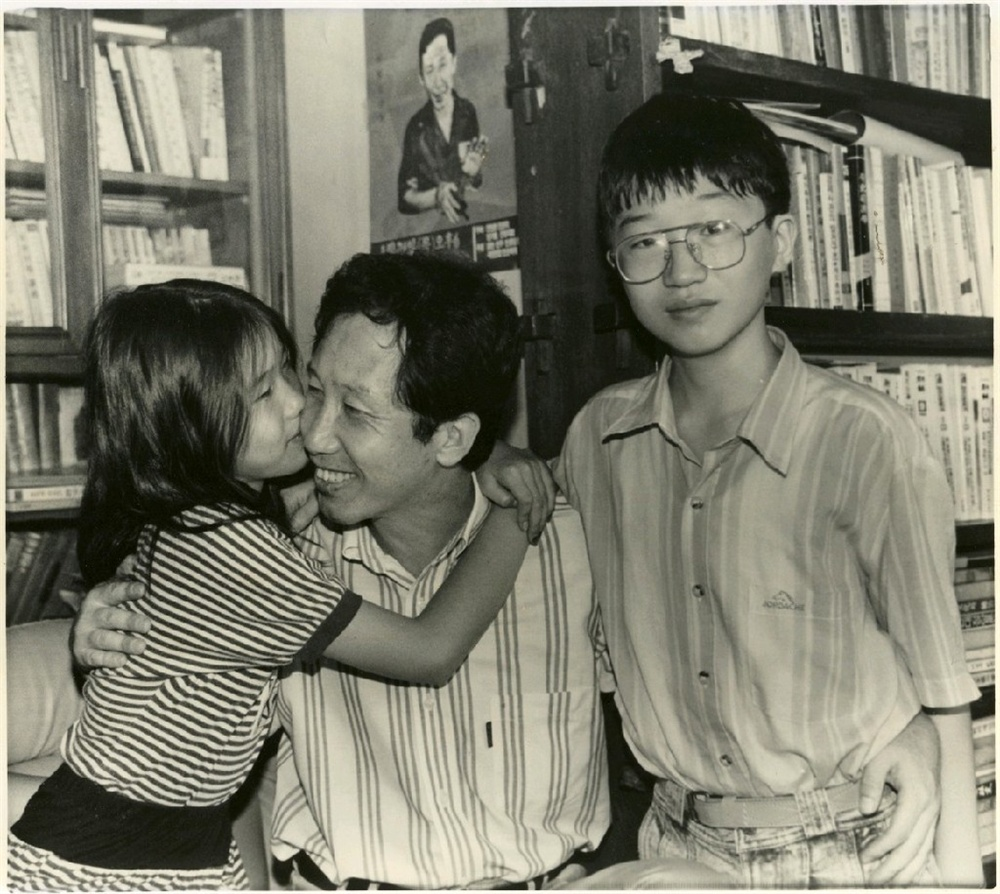김근태 전 의원이 92년도 출소 후 김병민씨(왼쪽), 김병준씨(오른쪽)와 함께 찍은 사진
