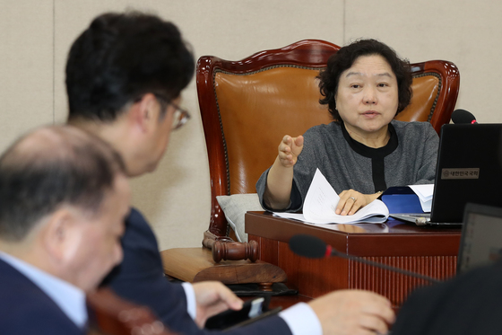 인재근 국회 행정안전위원장이 17일 서울 여의도 국회에서 열린 행안위 전체회의에서 발언을 하고 있다.
