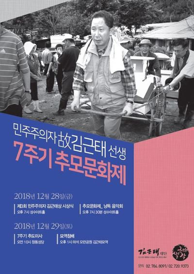 시상식은 28일 오후 7시 성수아트홀에서 열린다. 29일 오전 서울 도봉구 창동성당에서 추도미사를 하며 오후에는 경기 남양주시 마석 모란공원에서 김근태 묘역을 참배한다.