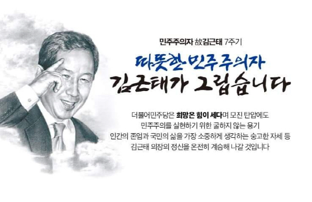 더불어민주당은 30일 고(故) 김근태 전 의원의 7주기를 맞아 “더 큰 민주주의, 따듯한 민생경제를 위해 최선을 다할 것”이라고 밝혔다.