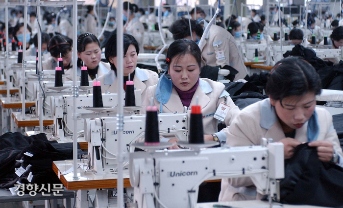 개성공단 신원 제1공장에서 북한 노동자들이 작업을 하고있다. 2006.2.9 /사진공동취재단
