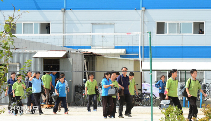 개성공단 J&J에서 근무하는 북한 노동자들이 점심식사를 하기 위해 식당으로 향하고 있다. 2013.09.17 /사진공동취재단