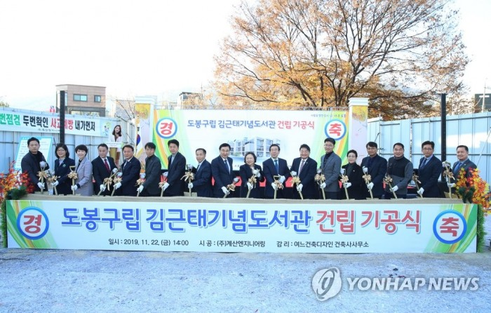 한편 이날 오후 ‘도봉구립 김근태기념도서관’ 기공식이 서울 도봉동 마루공원 부지에서 열렸다. 착공식에는 박원순 서울시장, 인재근 김근태재단 이사장(국회의원), 이동진 도봉구청장, 시의원, 구의원, 주민 등 300여명이 참석했다.