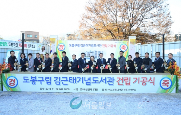 도봉구는 지난 22일 도봉동 279번지(도봉동 마루공원 부지)에서 ‘도봉구립 김근태기념도서관’ 착공식을 가졌다.