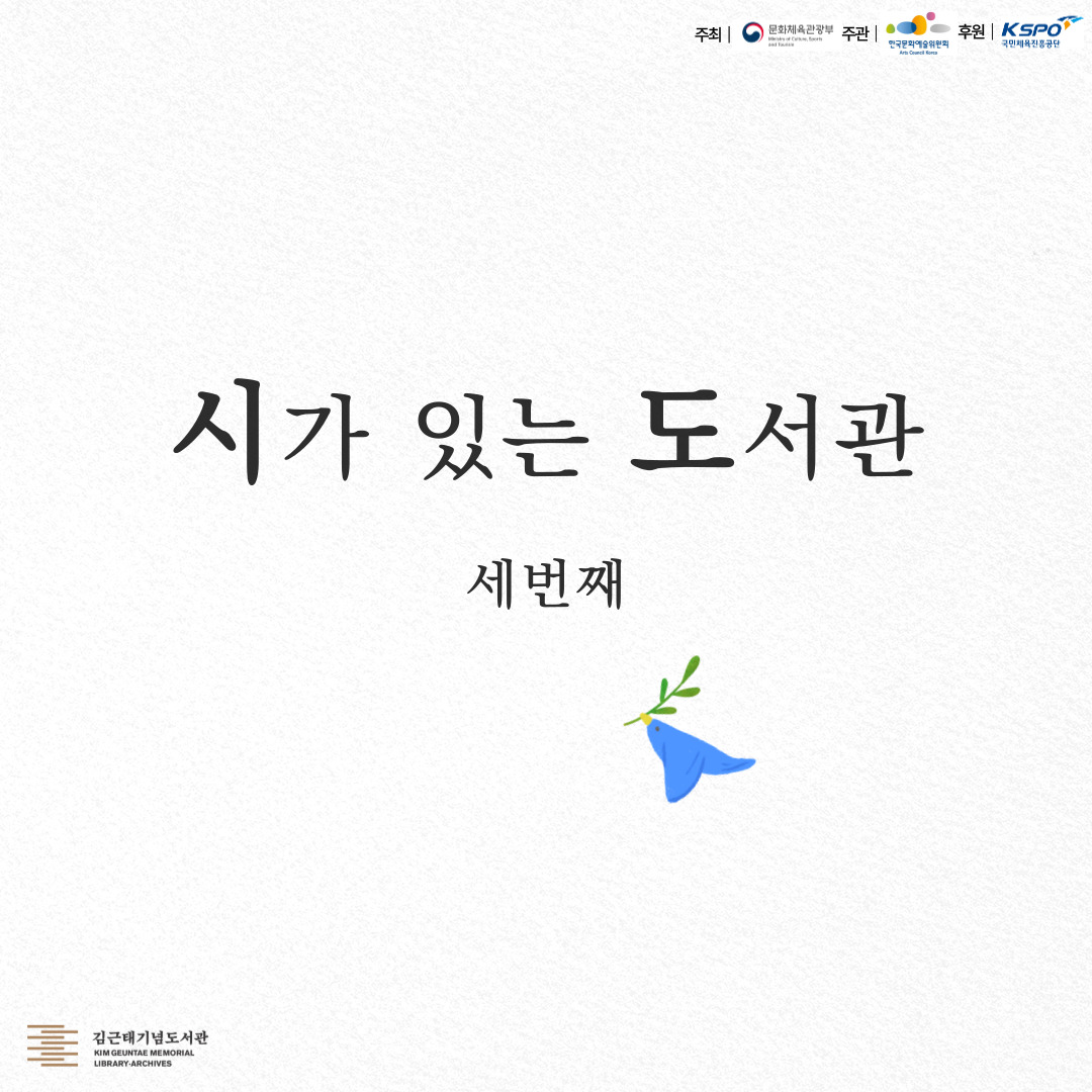 링크로 공유하기 인스타그램 공유하기 페이스북 공유하기 모집완료 [김근태기념도서관] [도서관상주작가] '시'가 있는 '도'서관_세번째 김근태재단2023.11.14 진행일자 2022.05.03 ~ 2022.05.03