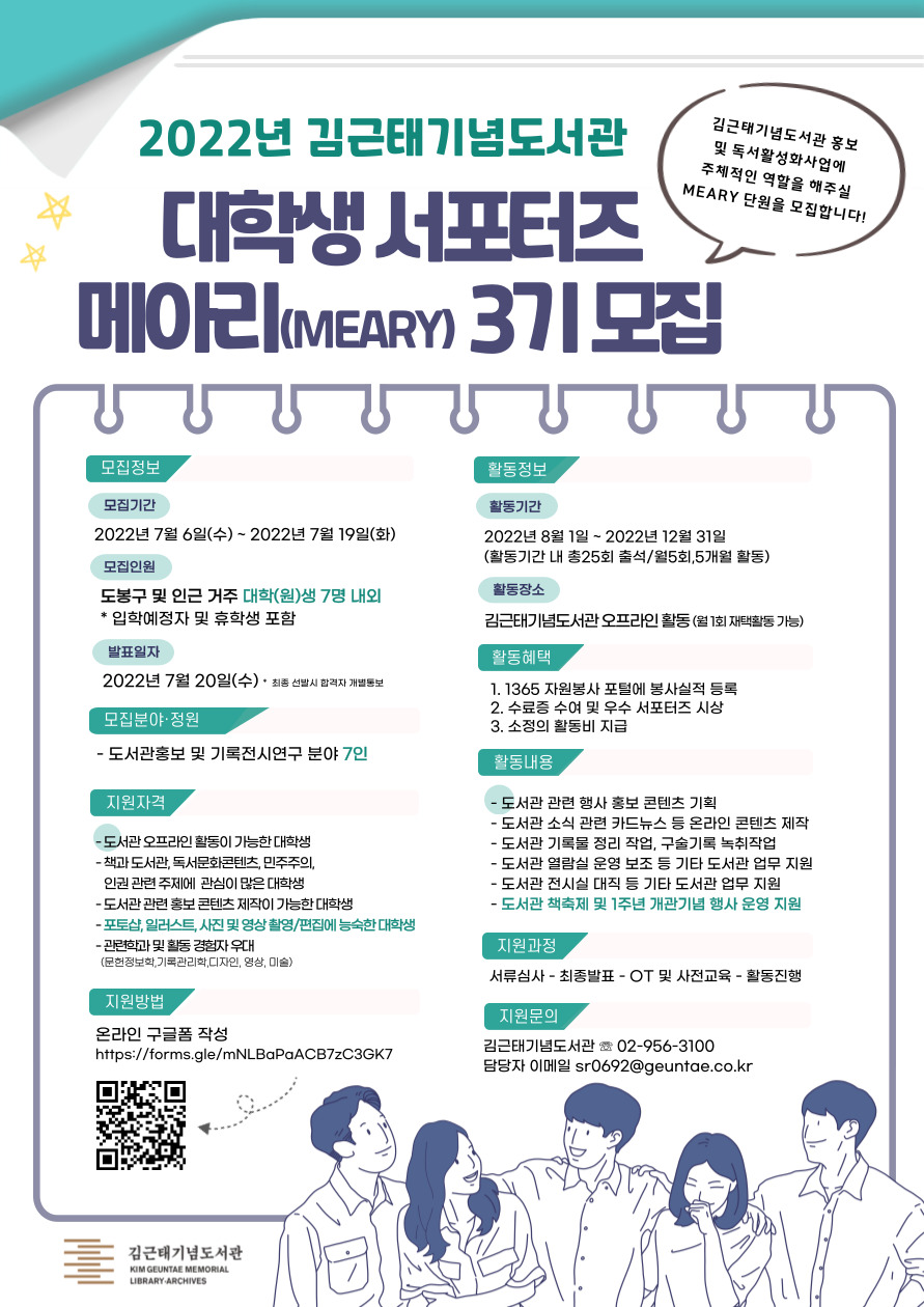 【2022년 김근태기념도서관 대학생 서포터즈 메아리(MEARY) 3기 모집】