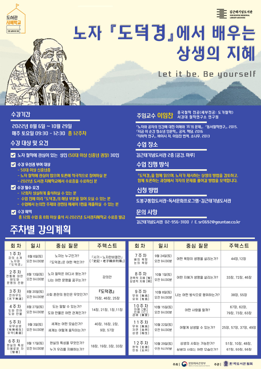 • 노자 철학에 관심이 있는 성인 (50대 이상 신중년 권장) 30인