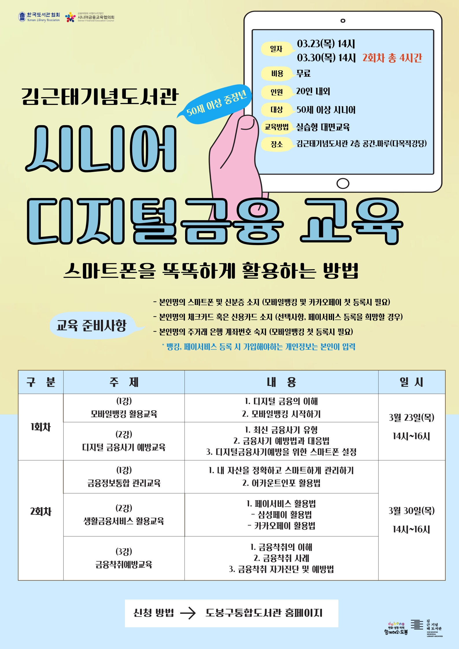 2023년 김근태기념도서관 시니어 대상 디지털금융 교육을 실시하고자 합니다.