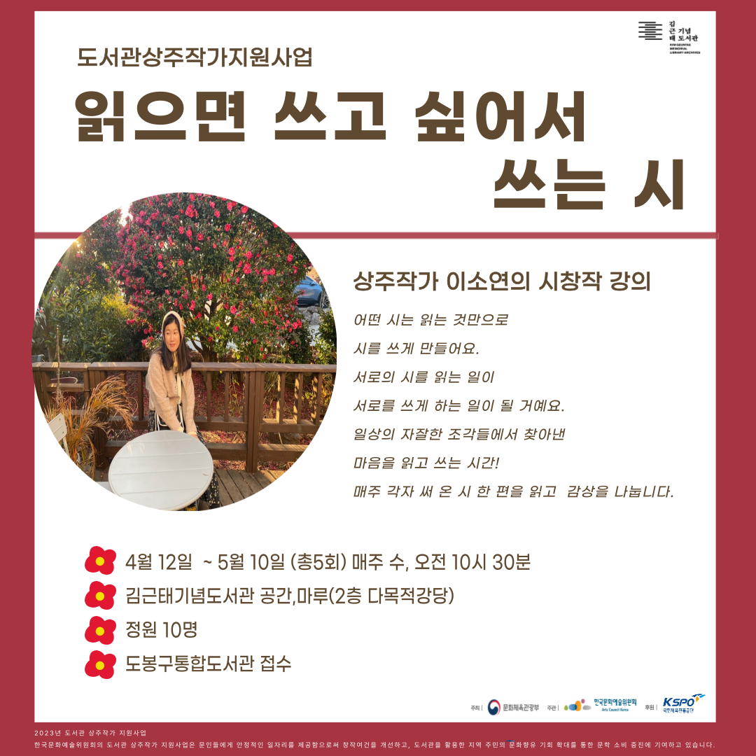 도서관상주작가지원사업 <읽으면 쓰고 싶어서 쓰는 시>