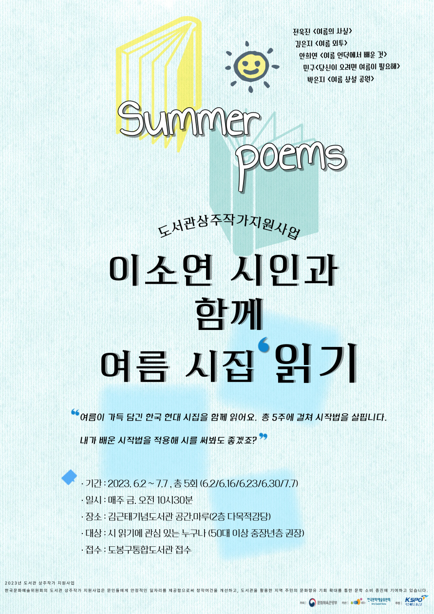 [도서관상주작가지원사업] 이소연 시인과 함께 여름 시집 읽기