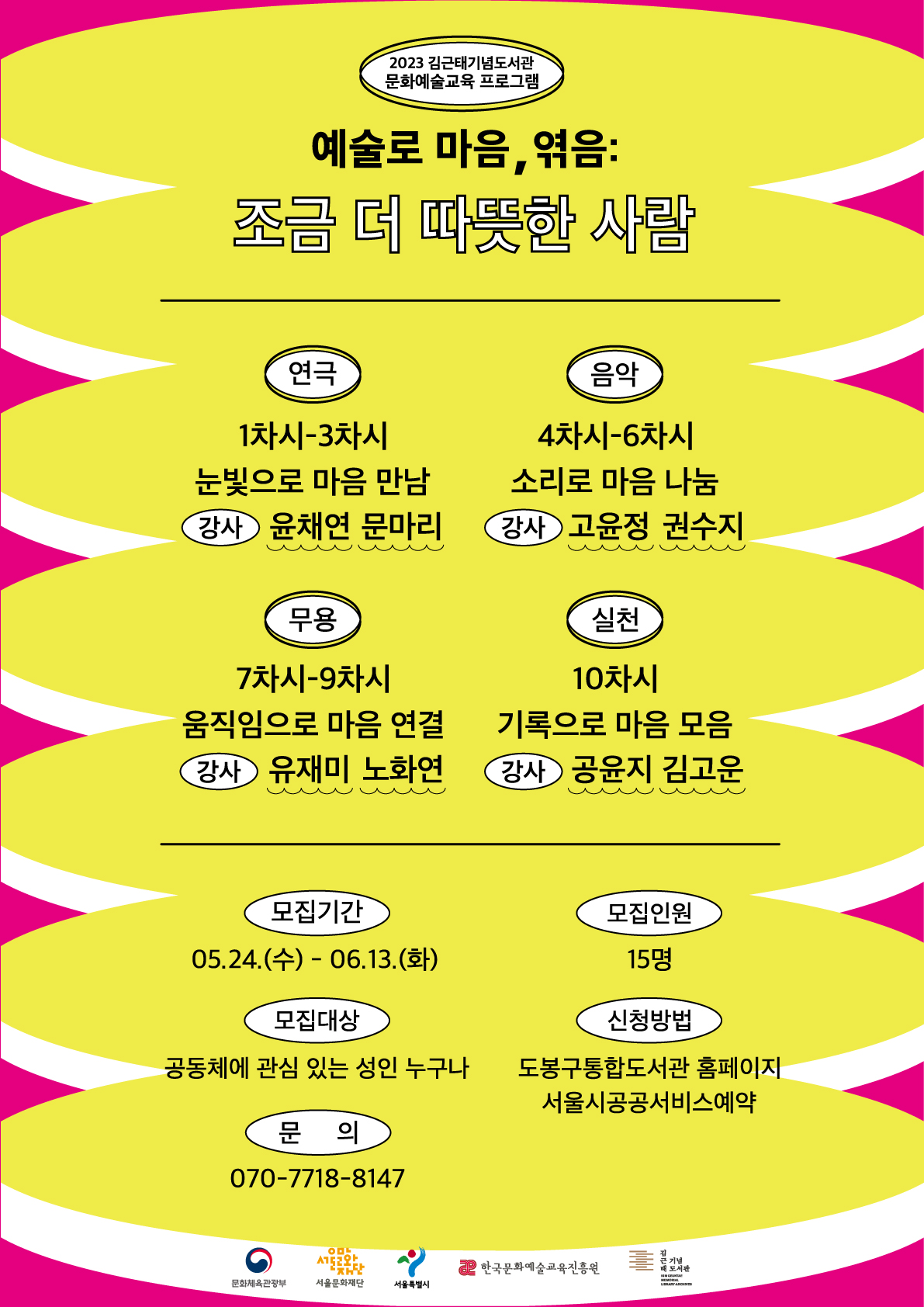 ㅇ 교 육 명 | 2023 김근태기념도서관 문화예술교육 프로그램 <예술로 마음,엮음: 조금 더 따뜻한 사람>